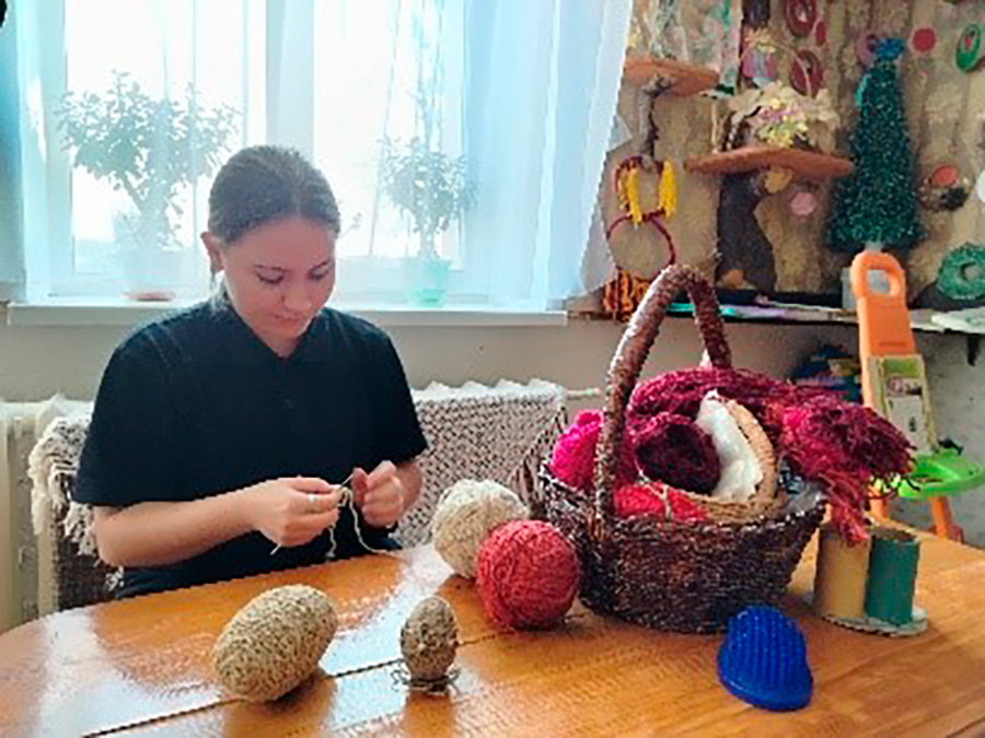 В Комсомольской библиотеке участники клуба «Мир увлечений» под руководством библиотекаря создавали главный атрибут праздника на мастер-классе «Пасхальное яйцо».