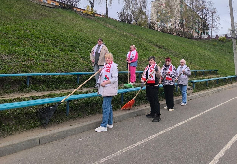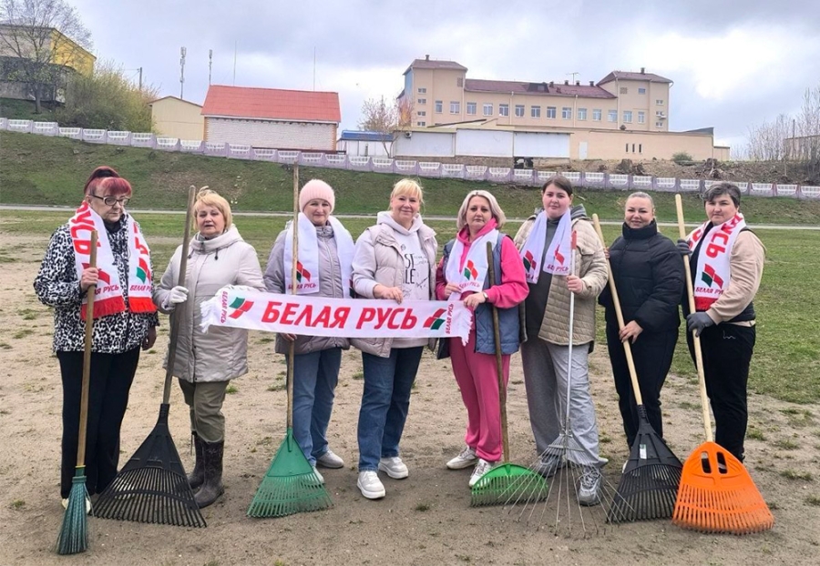 Педагоги СШ N2 г. Копыля вместе с директором, председателем РО ОО "Белая Русь" трудились на территории учреждения образования. Благодаря их стараниям приведен в порядок школьный стадион.