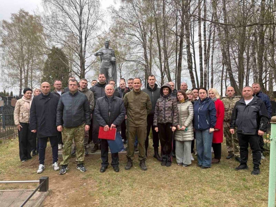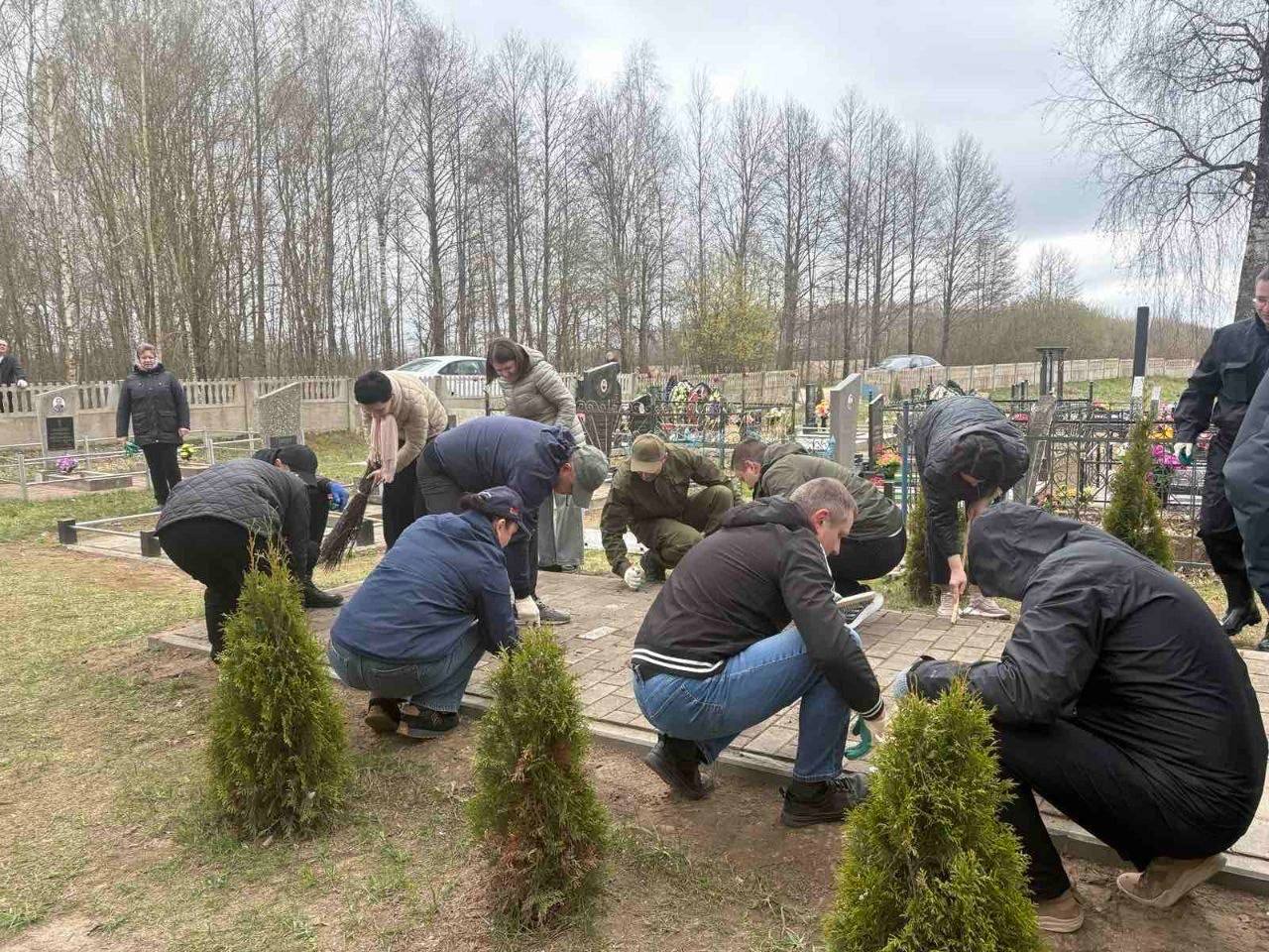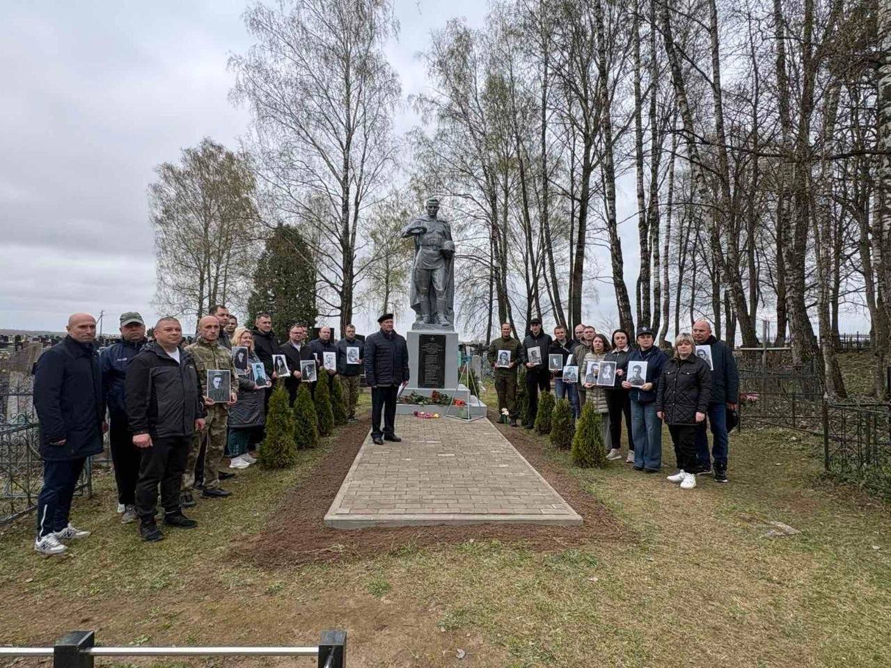 У братской могилы, где похоронены участники Лавского боя погибшие в декабре 1942 года, в том числе Викентий Дроздович - Герой Советского Союза, работавший в паспортном столе, участники мероприятия благоустроили территорию.