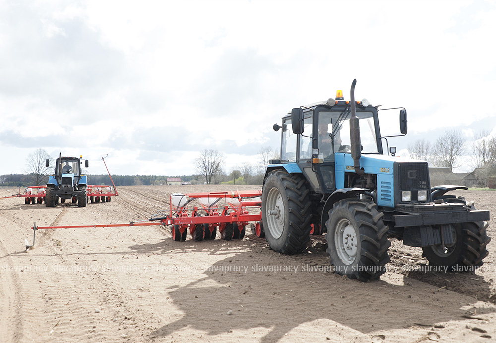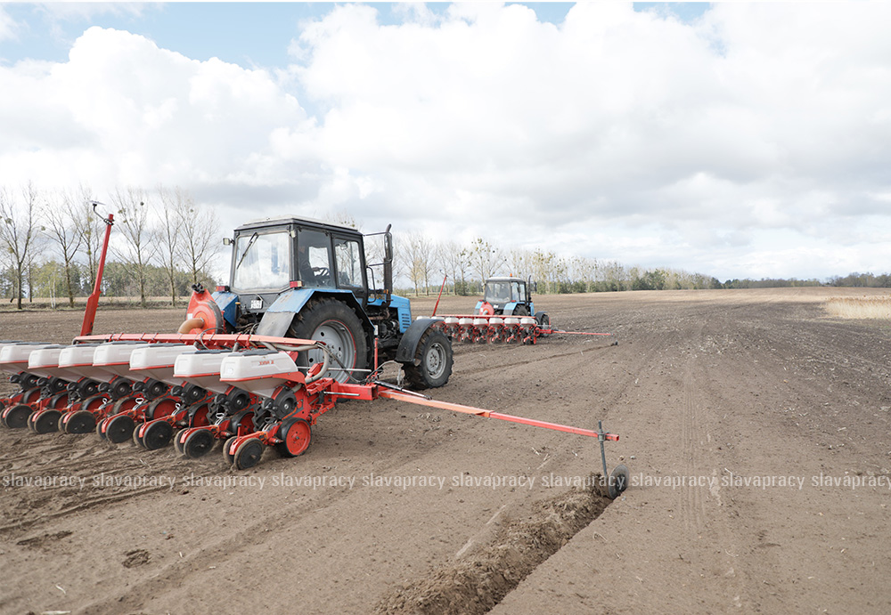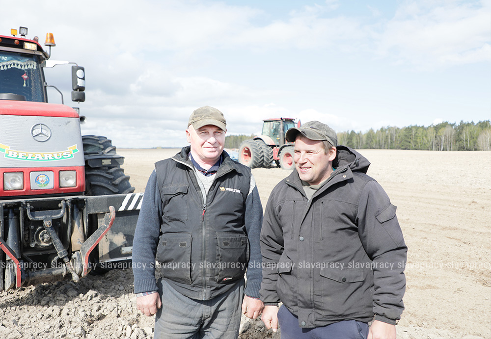 Нам удалось встретиться с теми, кто трудится на полях сельхозпредприятия. Вблизи деревни Роспы на закладке будущего урожая кукурузы работали механизаторы Алексей Линник и Сергей Дубовик. Оба – за рулем тракторов МТЗ-1221 с кукурузными сеялками Maxima. Трудовой стаж каждого – свыше 35 лет.