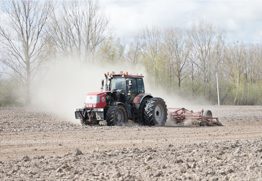В урочище Криница ветрено. Издалека, сквозь плотные столбы пыли, едва видны тракторы, но идут они ровно, без сбоев. Здесь на подготовке почвы на площади 210 гектаров работают трактористы: Василий Чеботарев на МТЗ-3522 с агрегатом-компактором и Андрей Шатило на МТЗ-3022 с агрегатом АКШ. Перед ними стоит не менее важная задача – подготовить площади под сев кукурузы.