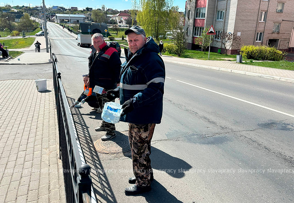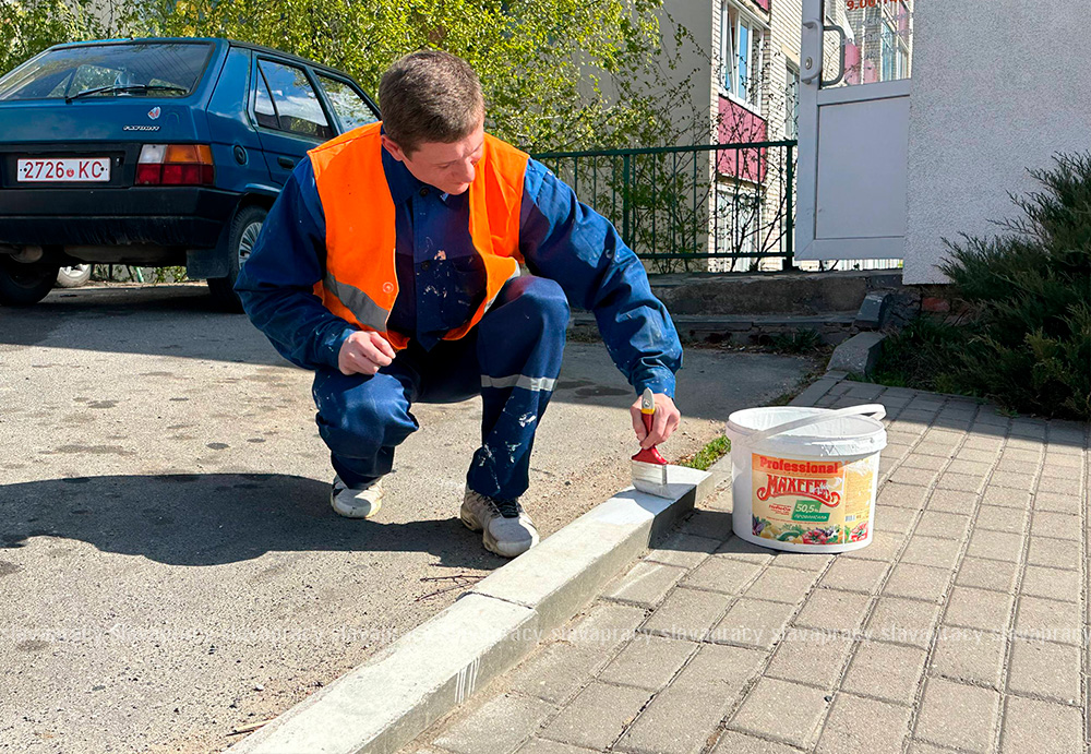 Подготовка к праздникам — это работа до самой последней детали. Пока дорожники заняты проезжей частью, сотрудники Копыльского ЖКХ наводят лоск на пешеходных зонах.